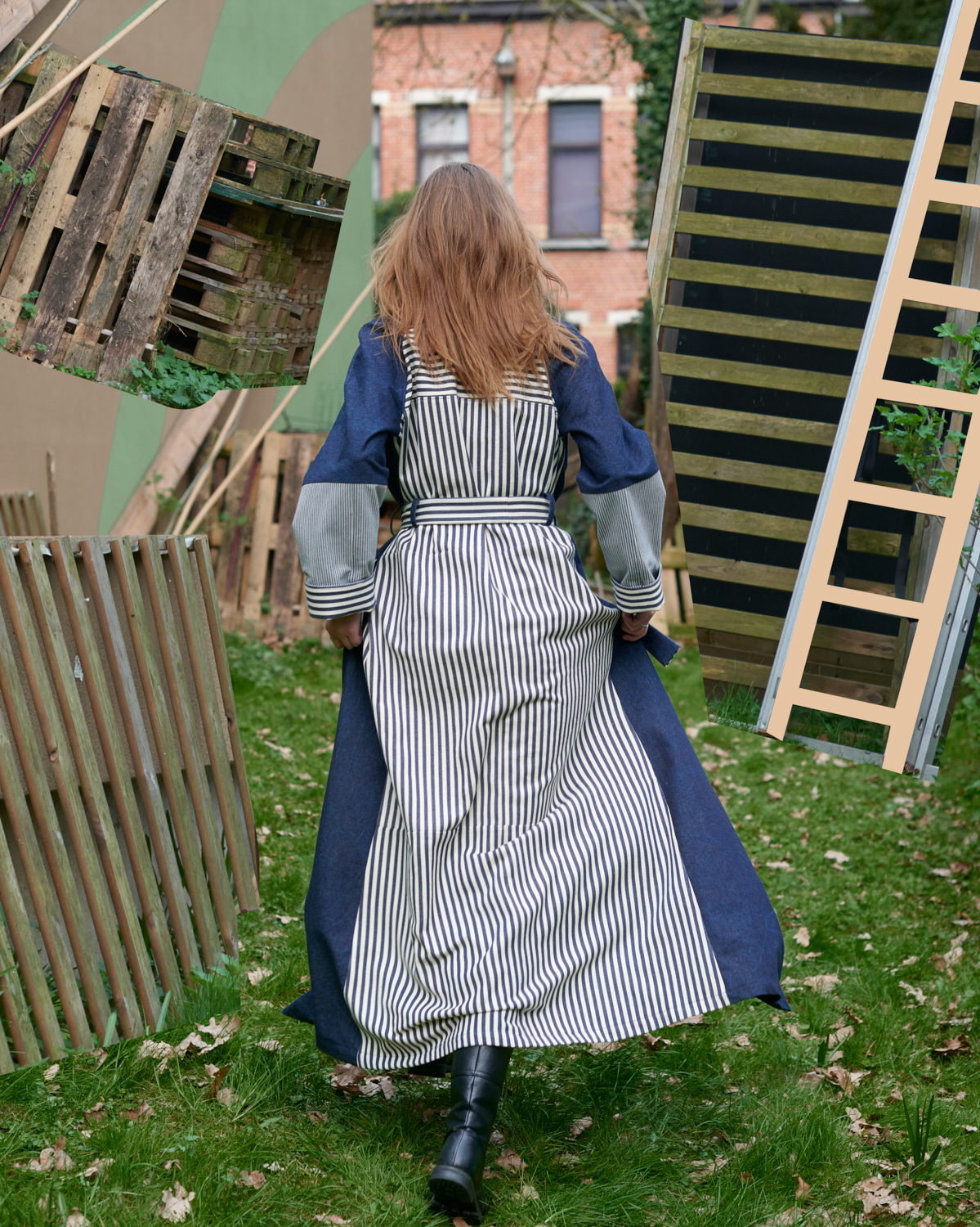 Coat made from jeans and striped cotton skirts by Ann Buermans